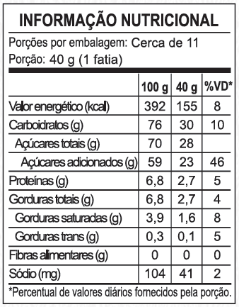Ingredientes: Leite integral; Açúcar; Glucose de Milho e Regulador de acidez Bicarbonato de sódio.