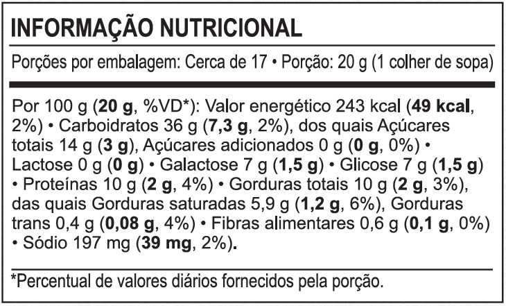 Consumir preferencialmente sob orientação de nutricionista ou médico. Este produto pode ter efeito laxativo.