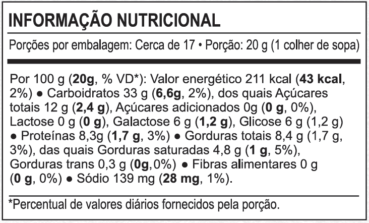 Contém açúcares próprios dos ingredientes. Este não é um alimento baixo ou reduzido em valor energético.